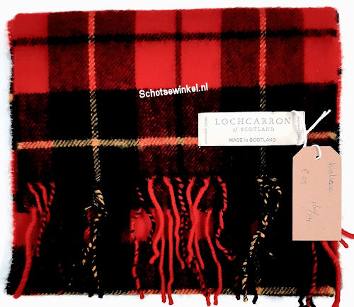Shawl -Fraser Red : mod, 100% lamswol. Afmeting ca. 24 x 160 cm.